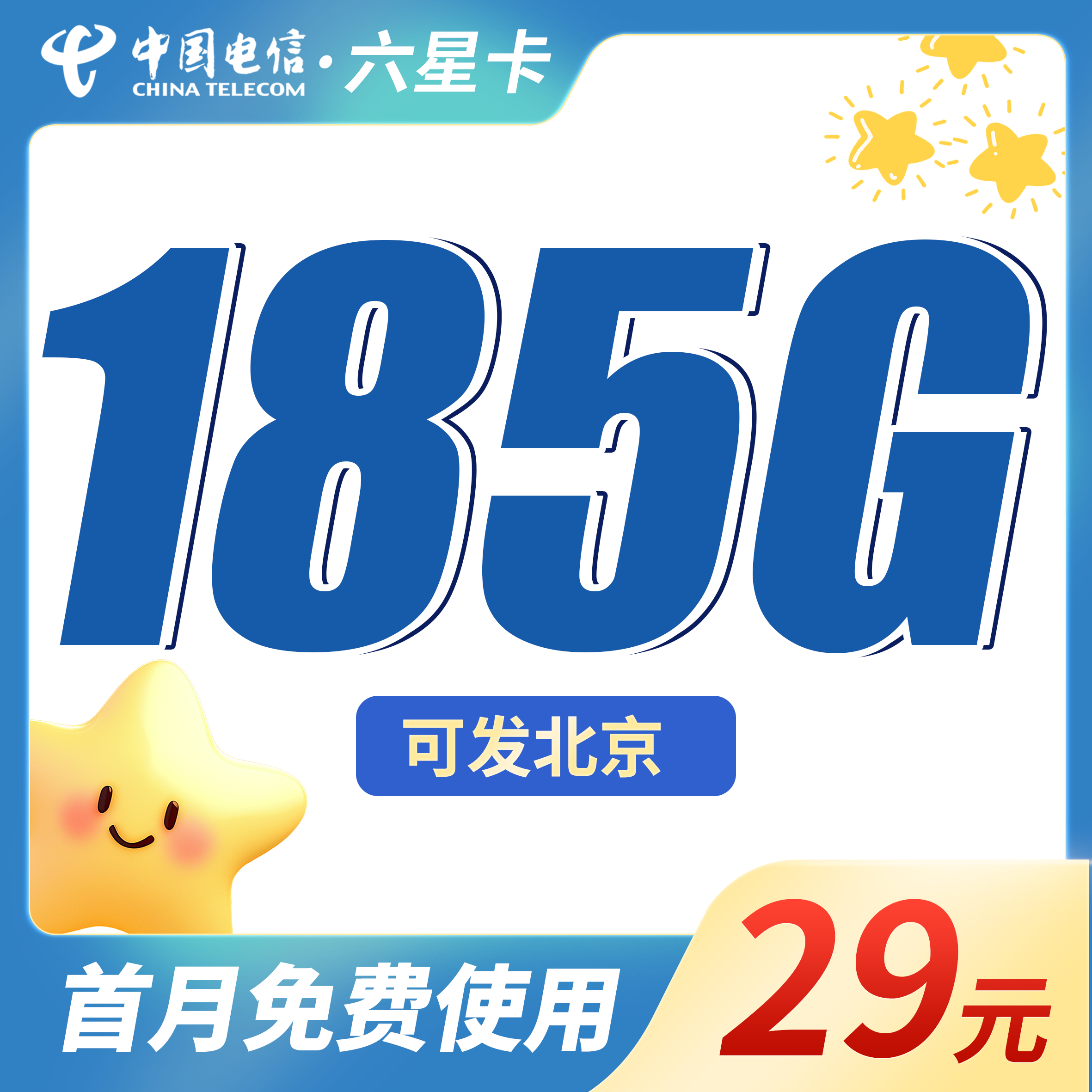 - 首月免费;充值50元2-6月为29月租,充值100元首年为29元;首月流量为80G,激活70天后叠加流量至185G,有效期24个月